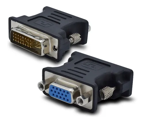 Adaptador DVI-D a VGA. Ideal para conectar Placas de Video con conector DVI a Monitores VGA. Permite conectar 2 monitores simultaneamente a la PC cuando la placa de video dispone de un conector DVI y uno VGA
